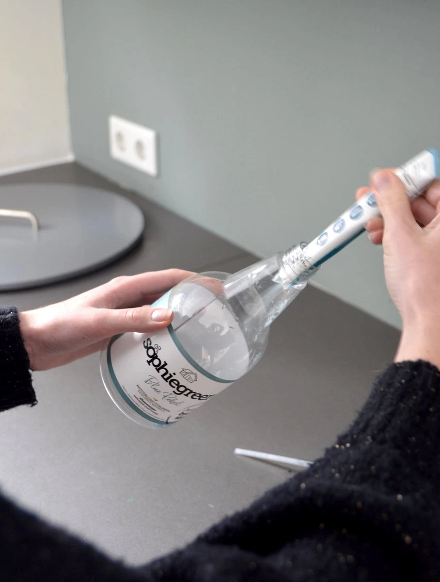 Vul de fles na met onze eco-refills. Simpel: Vul je fles met 750ml lauw water, voeg de eco-refill toe. Wanneer het poeder na ongeveer 2 minuten is opgelost, kan je gaan schoonmaken! Op oppervlak spuiten en met een droge, schone doek na wrijven. Gebruik je Sophie’s fles voor het eerst? Dan zit de poeder er al voor je in! Vul dan de fles langzaam met lauw warm water, tot het vul streepje.